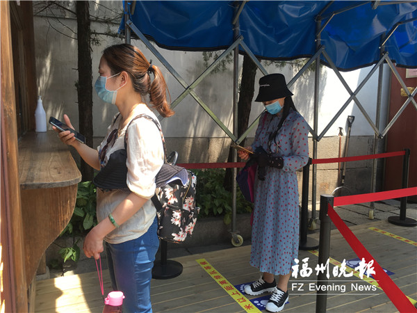 2日11时,记者来到位于澳门路的林则徐纪念馆。志愿者和保安在大门前,引导游客有序排队,指导他们提前进行网上门票预约、申领“八闽健康码”,再到领票处进行核验。