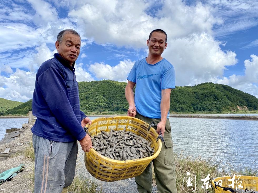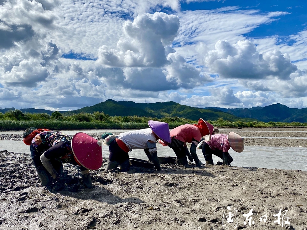 7月31日下午,霞浦县盐田乡浒屿村养殖户在收成海蛏。