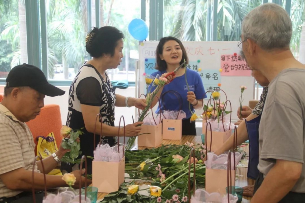 汤边社区家园为老人及居民们提供温馨、舒适的共享活动场地的同时, 还定期组织大家参与长者学堂——课程、唱歌、乐器、电影、棋牌、手工、插花等多种文娱活动 。