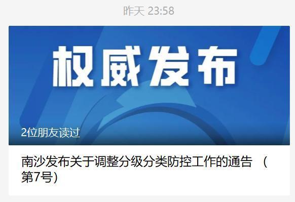 根据广州市新型冠状病毒肺炎疫情防控指挥部第17号通告精神,结合南沙区新冠肺炎疫情防控实际情况,为保障广大市民健康安全和正常生产生活需求,有关疫情防控工作调整情况通告如下: