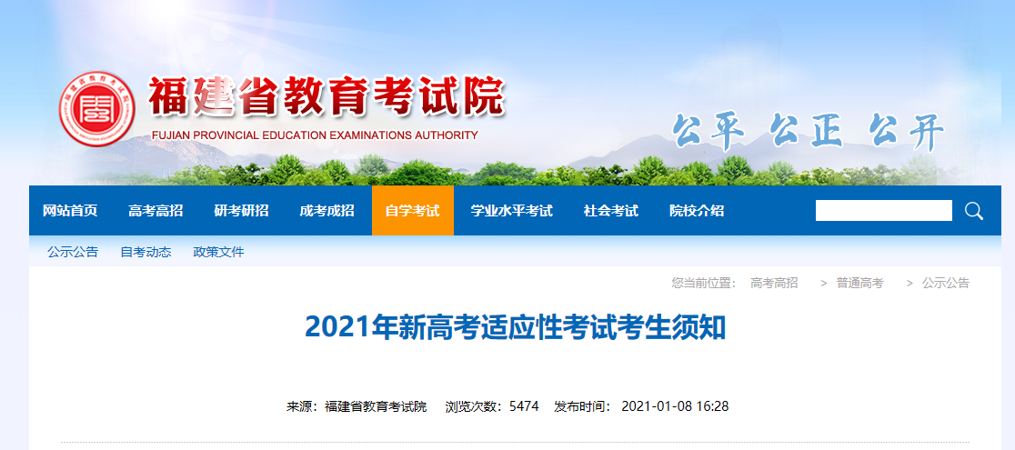 今天,福建省教育考试院下发《2021年新高考适应性考试考生须知》,一起来看看↓↓↓