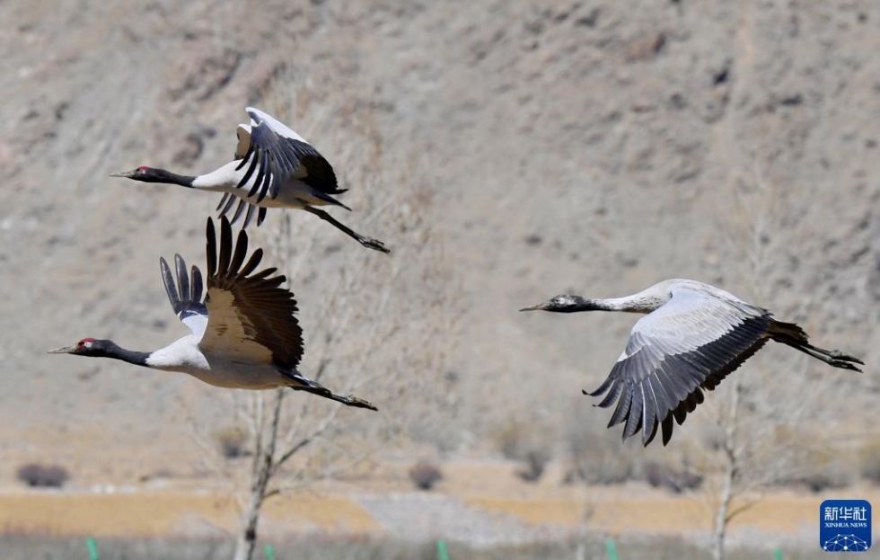 近期,众多黑颈鹤活跃在西藏自治区日喀则市南木林县境内。南木林县位于雅鲁藏布江北岸,是雅江中游河谷黑颈鹤国家级自然保护区的核心区域。