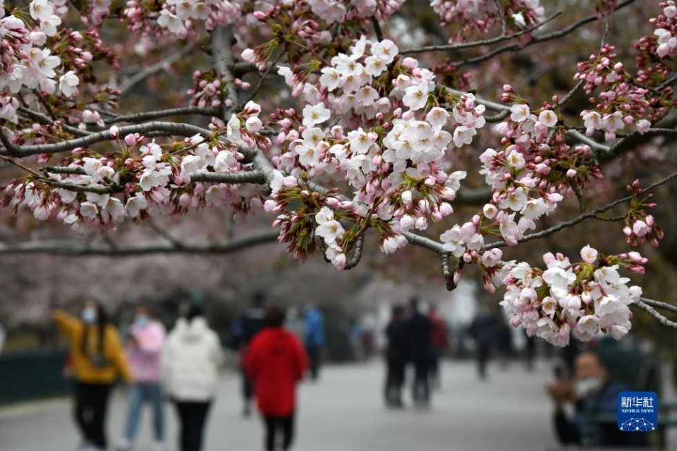 近日,山东省青岛市中山公园内种植的上千株樱花陆续进入花期,整个樱花季将持续到4月中下旬。