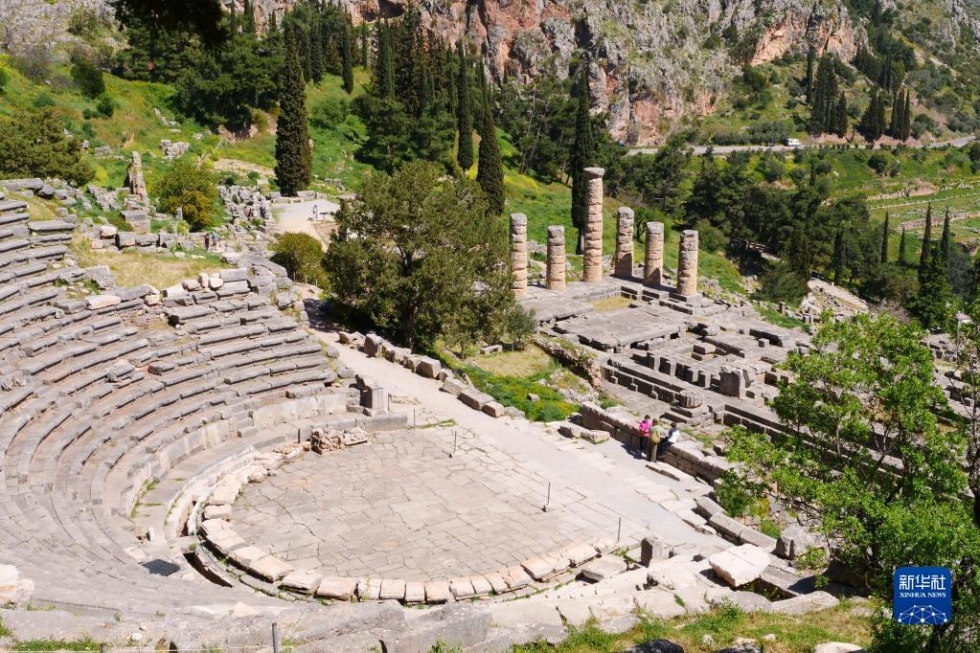 这是4月8日在希腊中部德尔斐地区拍摄的德尔斐考古遗址。