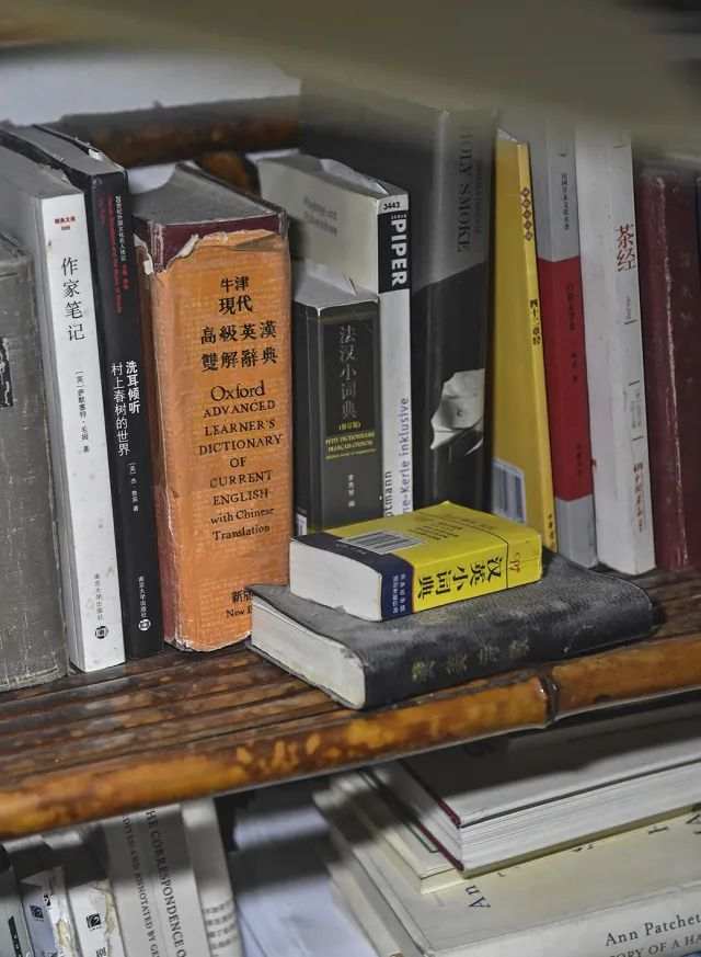 晓宇的书柜里有英语、法语词典,还有胡适和毛姆的书