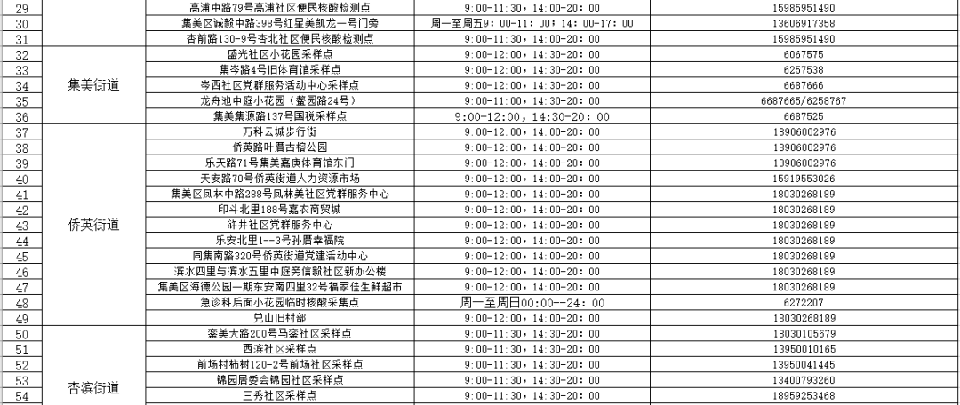 现将核酸采样点位及开放时间通告如下: