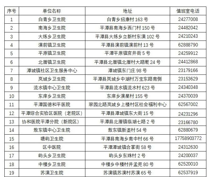 1.协和医院平潭分院:周一至周日 24小时全天;
