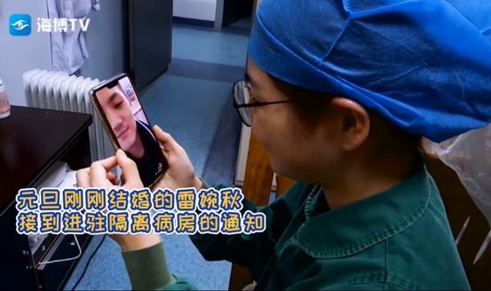 元旦新婚的护师雷婉秋与丈夫分别进驻福州肺科医院隔离区,在临时宿舍里与丈夫视频通话是她每天最甜蜜的时刻。