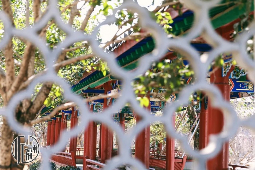 步入园内,即可望见名为“曲影菡香”的长廊,这座长廊称得上是福州公园之最。