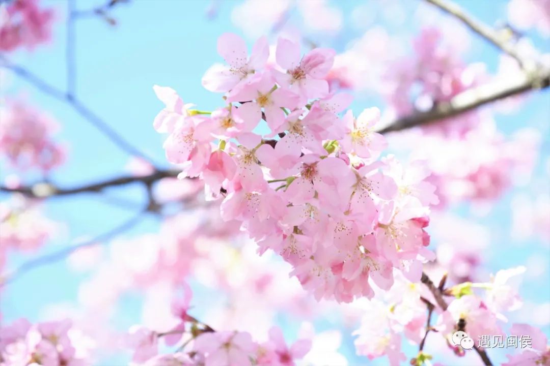 漫步龙台山生态园,可以看到错落有致的樱花树上花团锦簇在春日蓝天的映衬下,盛开如云似霞、满树璀璨、美不胜收。