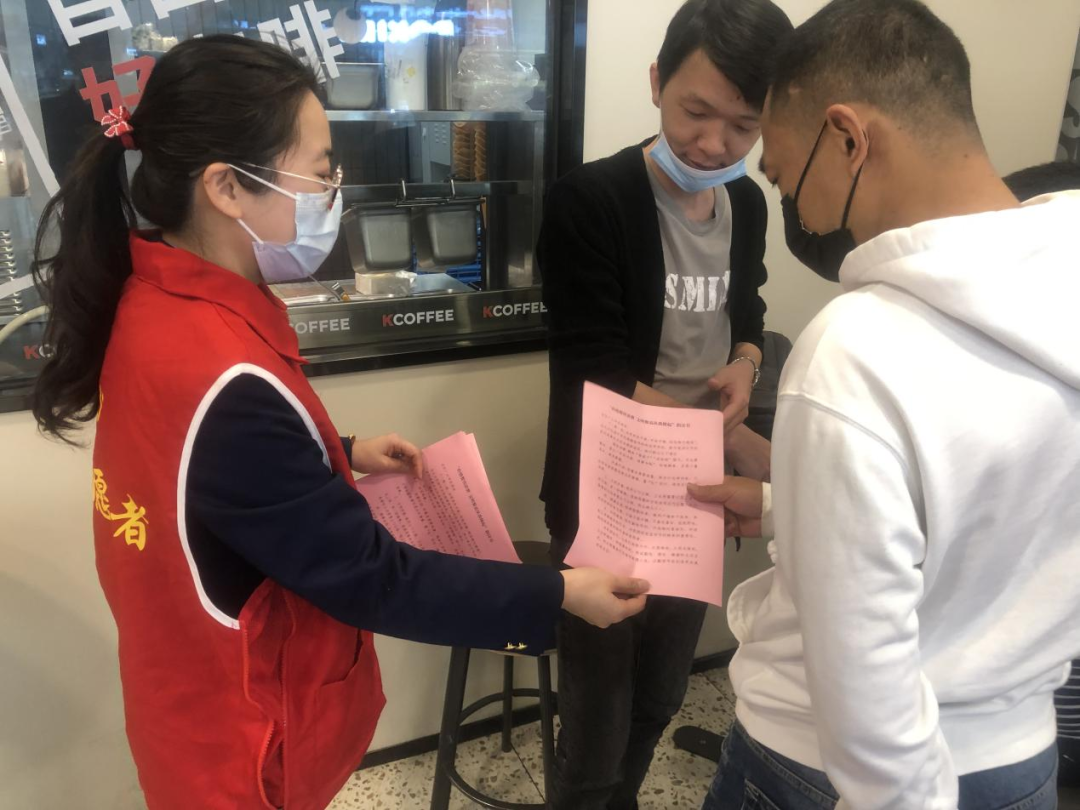 15日,区市场监督管理行政执法大队志愿服务队走进正荣财富中心、高新万达广场,现场发放疫情防控宣传单,提醒市民外出务必戴好口罩,并督促商户按照要求做好疫情防控工作。