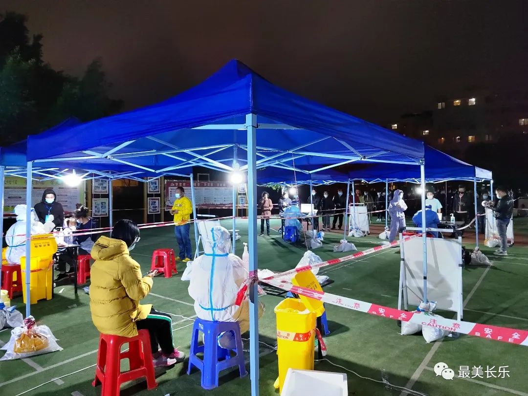 长乐区十八个乡镇街道的各核酸检测采样点也都开启了昼夜不停模式。每一顶帐篷下发出的微弱光亮,宣告了长乐人民面对疫情同心戮力的坚定决心,也传递着长乐人民同心战疫、势不可挡的力量。