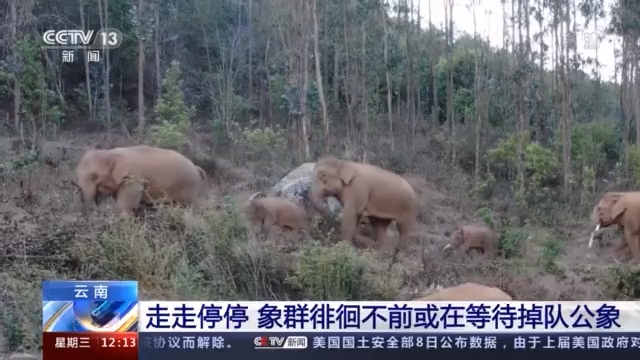 走走停停 象群徘徊不前或在等待掉队公象>>