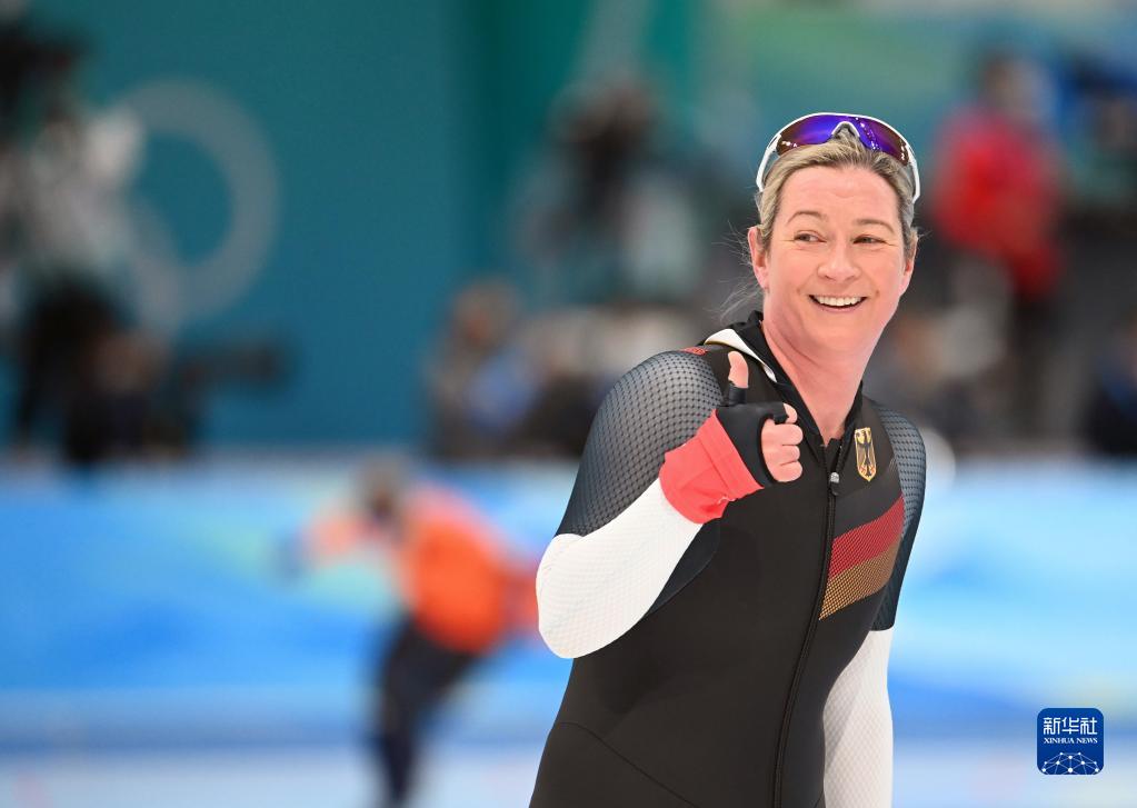 2月5日,德国选手克劳迪娅·佩希施泰因在速度滑冰女子3000米决赛后。新华社记者 武巍 摄