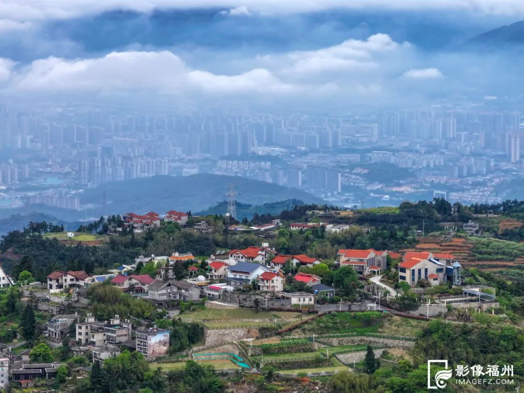 云海、远山和城市同处一框,让人流连忘返。