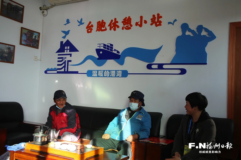 台湾职工在海上共享职工之家的台胞休憩小站休息。(市总工会供图)
